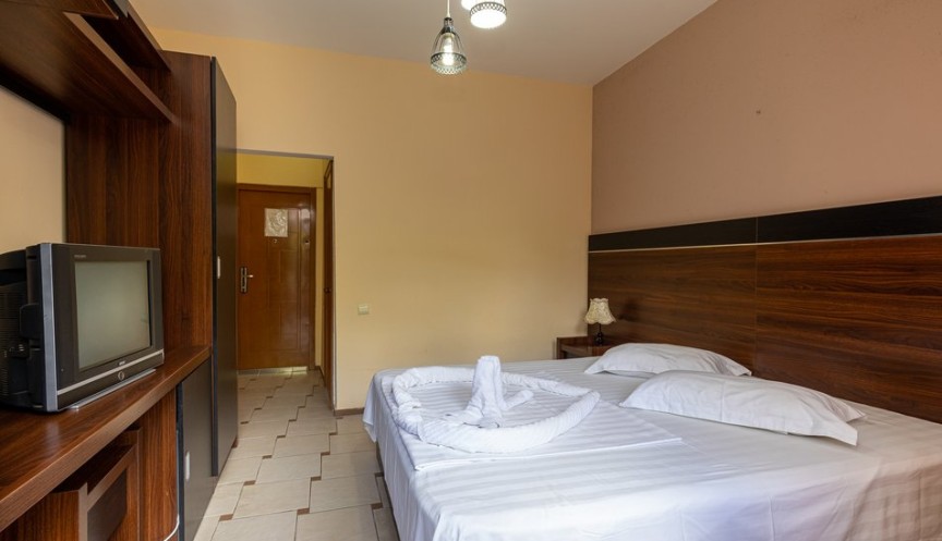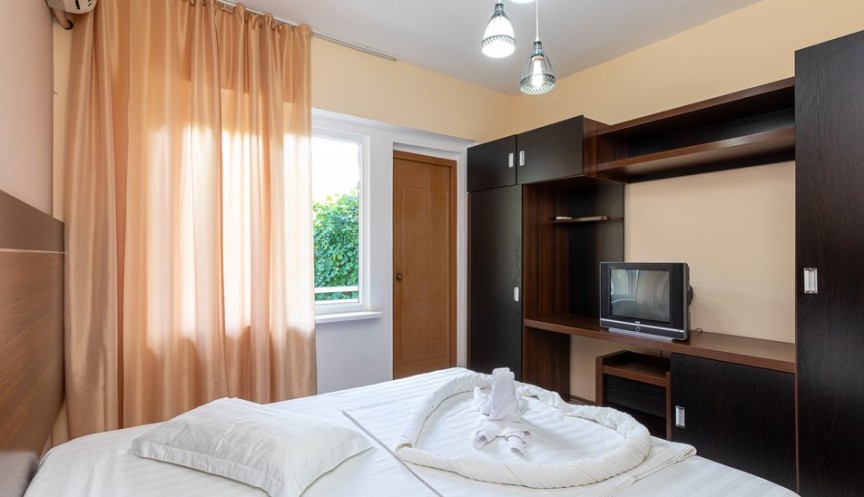Для удобства гостей предусмотрены: кондиционер, небольшой холодильник и телевизор.