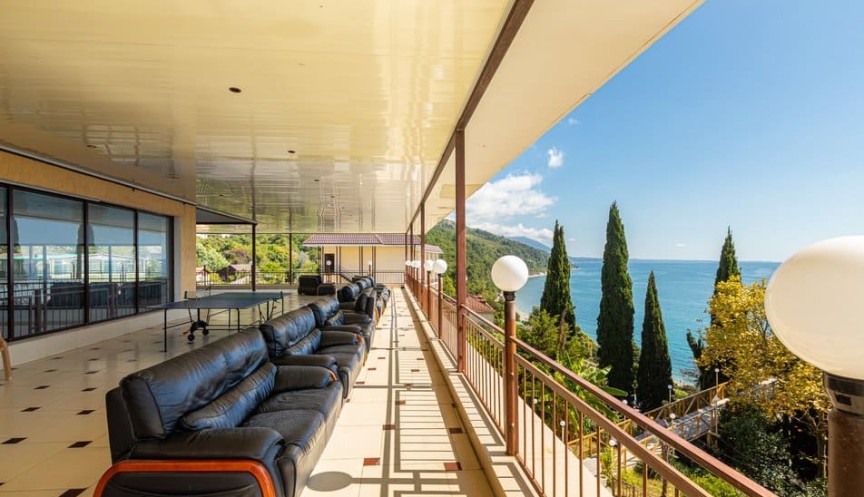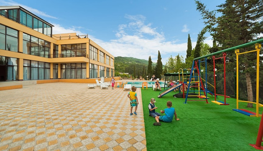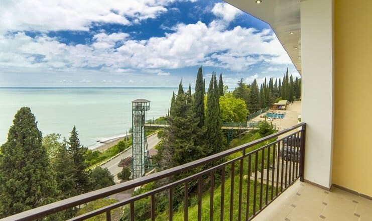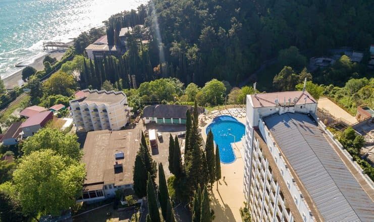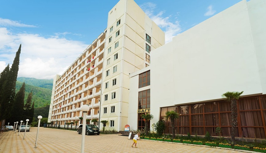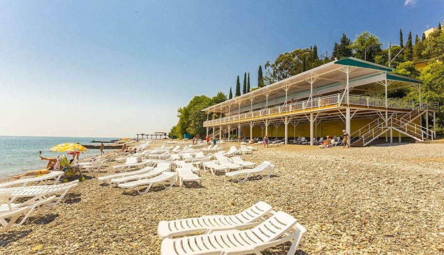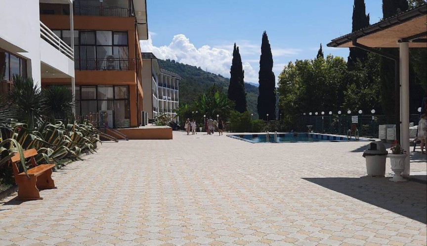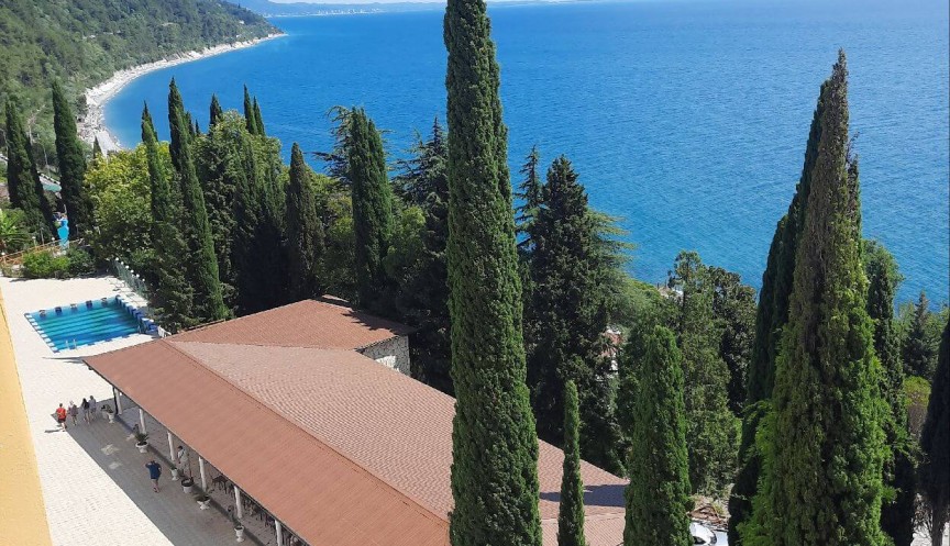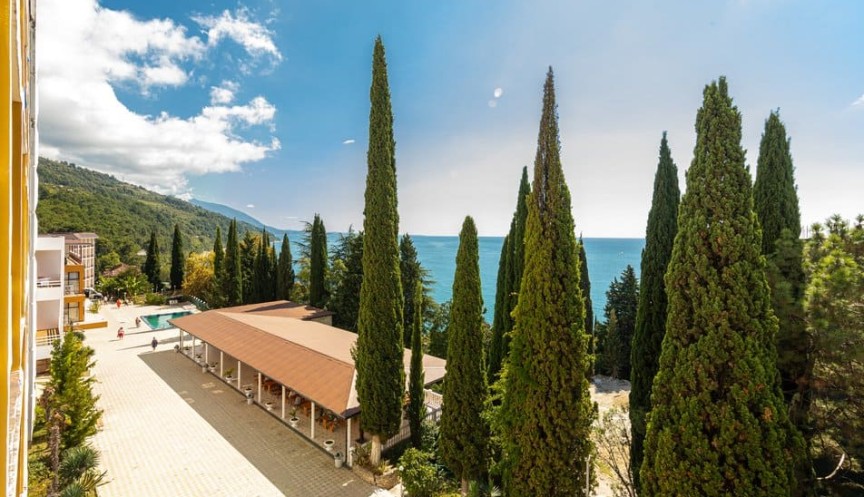 Пансионат Багрипш окружен пышной растительностью: кипарисами, пальмами и олеандрами, создающими живописный ландшафт. Уникальный рельеф местности и обилие зелени обеспечивают приятный микроклимат, защищая от изнуряющей жары и духоты.